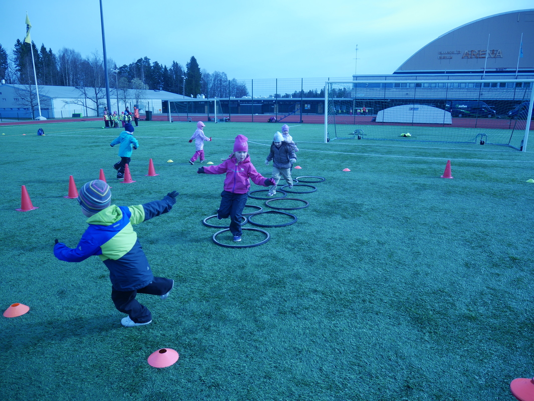 Tiistaina 21.4. ja keskiviikkona 22.4. järjestettiin F.C.Kasiysin perinteinen päiväkotitapahtuma. Kisakallion Urheiluopiston opiskelijat liikuttivat kahden aamupäivän aikana yli 530:tä lasta. Urheilupuiston tekonurmi oli täynnä erilaisia liikuntarasteja, joissa lapset pääsivät tutustumaan jalkapalloon sekä harjoittelemaan motoriikkaa ja ketteryyttä. Jalkapallohallissa pelattiin samaan aikaan ystävyysotteluita eri päiväkotien kesken. Opiskelijat onnistuivat opinnäytetyössään mainiosti ja satojen lasten naurava naama oli heille ja meille Kasiysiläisille paras mahdollinen kiitos tapahtuman järjestämisestä. Kaikkien päiväkotien ja lasten iloksi voimmekin luvata perinteen jatkuvan taas ensi keväänä. |