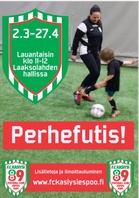 Perhefutis on lapsen ja vanhemman yhteinen harrastus. Toiminnassa harjoitellaan monipuolisesti perusliikuntataitoja ja tututustaan pallon käsittelyyn. Perhefutiksessa autetaan lasta oivaltamaan ja oppimaan itse ja yhdessä vanhemman kanssa kokeilemalla. On nähtävissä, että vanhemmilla on suuri merkitys lapsen liikkumisen tukijoina ja liikunnalliseen elämäntapaan kasvattajana. Ilmoittautuminen ja lisäinfoa täältä. |