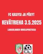 Kuvia tapahtumasta etusivulla. FC Kasiysin ja Pöxyjen Kevätrieha järjestettiin Laaksolahden urheilupuistossa ja monitoimitalolla. Ikäluokkien joukkuekuvaukset olivat myös samalla. Ilma oli pilvinen ja tuulinen, onneksi sateelta säästyttiin. Ilmasta huolimatta tunnelma oli lämmin ja iloinen. Paljon kohtaamisia, hymyä ja naurua! Suomen maajoukkueiden maskotit Bubi ja Helmi saivat myös äärettömän Seuran ikäluokat pitivät erilaisia rasteja tekonurmella, oli hullunkurisia juoksukisoja, laukaustutka, tarkkuuspotku, limbo, temppurata jne. Lisäksi seuran ulkopuoliset toimijat järjestivät omia rastejaan: hevosajelu, polkupyörähuolto, aikuisille ohjattuja tunteja: painonnoston alkeissa, kuntotreenissä ja juoksukoulussa. Tapahtuma huipentui Pöxyjen ja EPS/Reservin 3. divarin paikallismatsiin. Matsia edelsi Kasiysin pelaajien kulkue kentän ympäri. Peli päättyi valitettavasti Pöxyjen kirvelevään tappioon, vaikka kannustuksesta se ei jäänyt kiinni. Kiitos kaikille mahtavasta päivästä!