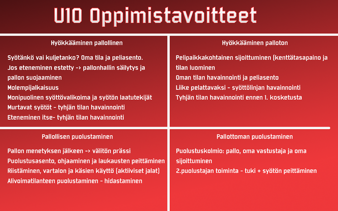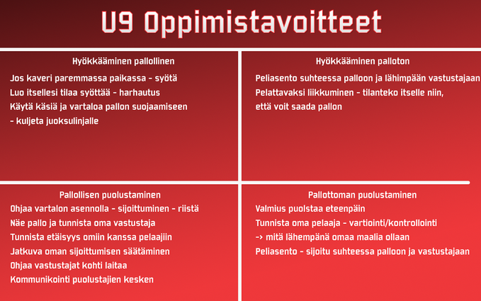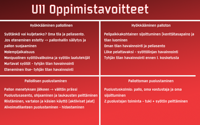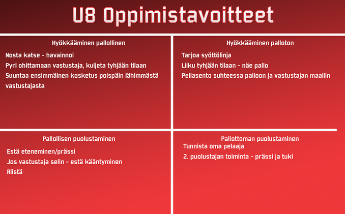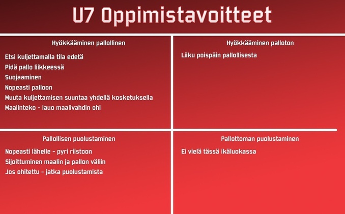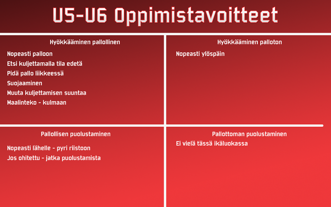 U6-11 ikäluokkakohtaiset oppimistavoitteet