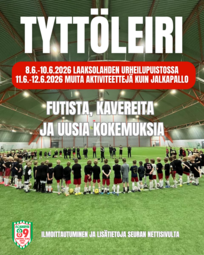Tyttöjen fudisleiri Early bird-hinta 99€, voimassa 12.4.2026 saakka. Sen jälkeen leirin hinta on 109 €. Leirin hinta sisältää lounaan jokaisena leiripäivänä, ohjatut treenit ja kivaa yhdessäoloa muitten osallistujien kanssa. Ilmoittakaa osallistujan allergiat ilmoittautumisen yhteydessä.